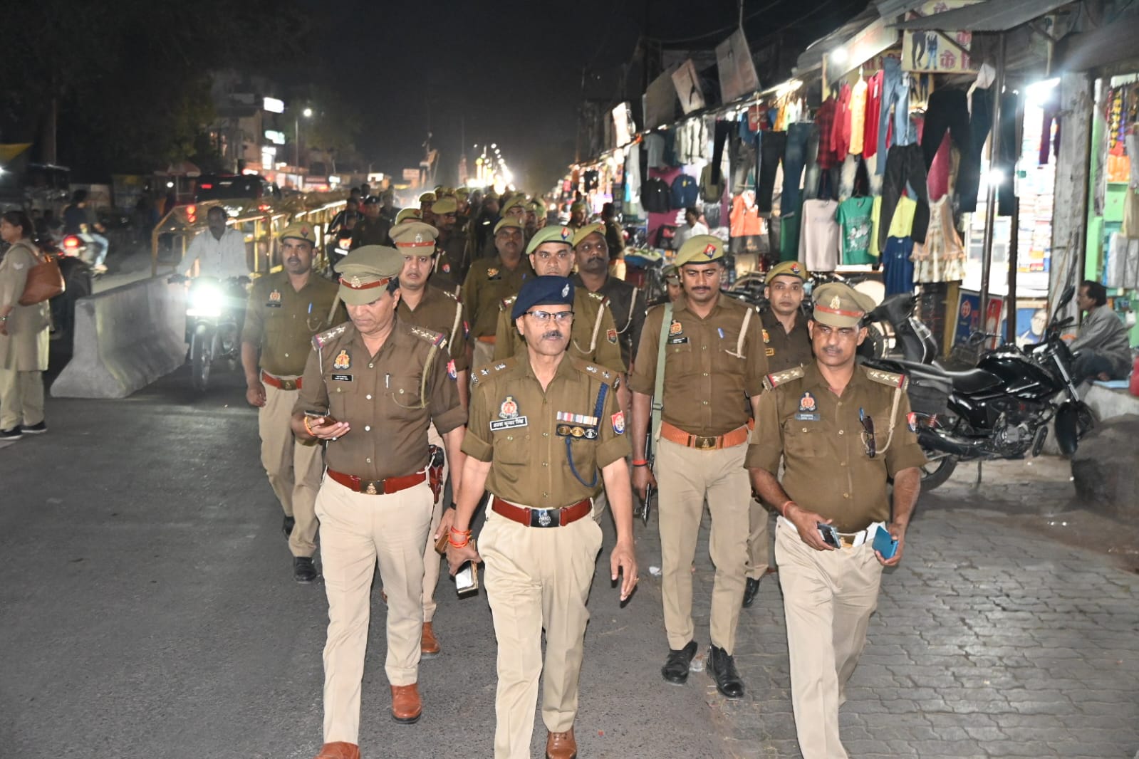 चित्रकूट -आज दिनाँक 02.03.2026 को पुलिस अधीक्षक चित्रकूट अरुण कुमार सिंह के नेतृत्व क्षेत्राधिकारी नगर अरविन्द कुमार वर्मा उपस्थिति में होली पर्व के दृष्टिगत कानून एवं सुरक्षा व्यवस्था को सुदृढ़ बनाये रखने हेतु थाना कोतवाली कर्वी पुलिस बल द्वारा कर्वी शहर के पुरानी कोतवाली, एलआईसी तिराहा, भगवानदीन चौराहा ,धनुष चौराहा एवं मिश्रित आबादी क्षेत्र,बाजार, भीड़ भाड़ वाले स्थानों पर पैदल गस्त किया गया। पुलिस टीमों द्वारा दुकानदारों, व्यापारीबंधुओ एवं क्षेत्रीय नागरिको से वार्ता कर सुरक्षा का एहसास कराया। पुलिस अधीक्षक द्वारा सड़क पर अवैध रुप किए अतिक्रमण को हटवाया गया साथ ही शराब की दुकान,होटल/ढाबा एवं दो/चार पहिया वाहन एवं संदिग्ध व्यक्तियों की चेकिंग की गयी।