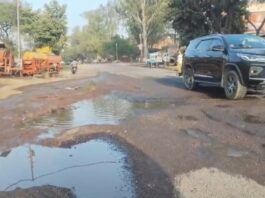 गढ़ों में डूबा नेशनल हाईवे राहगीर हो रहे हादसे का शिकार प्रशासन बना मूर्ख दर्शक